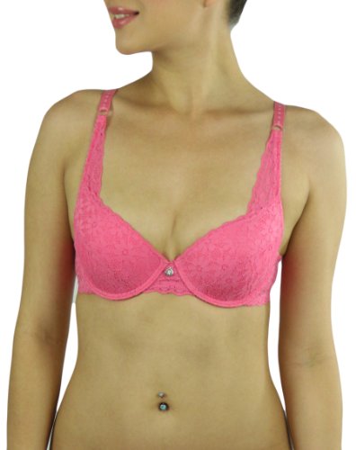 Best ToBeInStyle Women's Flower Pattern Lace Padded Demi Bra w/ Underwire Support & Adjustable Straps - 34C - Pink