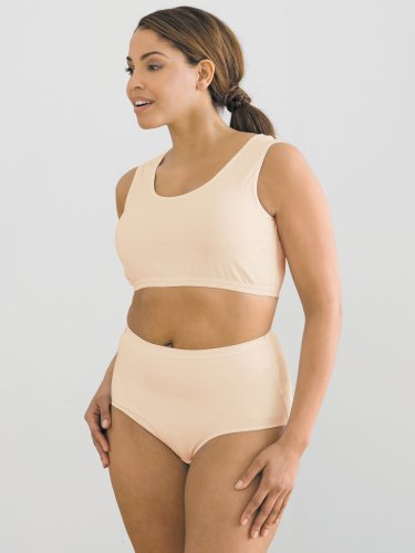 Experience the "love your body" fit with comfortable coverage, stay-flat trim, and line-minimizing construction. Extra-wide straps stay put, never strain shoulders. Slim fit. 95% cotton/5% spandex. Machine wash. Imported.