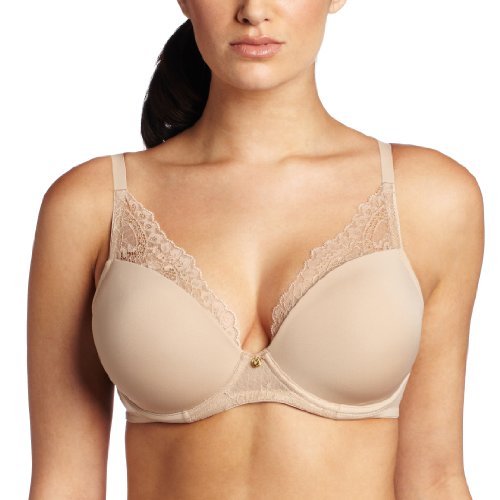 Intricate floral lace lends dramatic details to a molded upderwire cup bra. The plunging neckline offers a pretty yet natural shaping.Read more Natori Women's Expose Contour Underwire Bra, Café, 32G